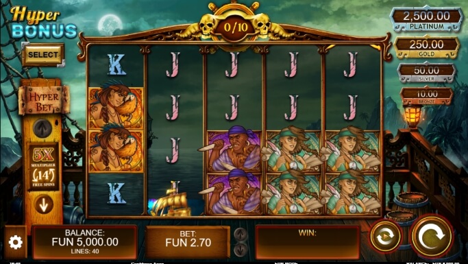 Caribbean Anne สล็อตยังมาพร้อมแจ็คพอต 4 ระดับและระบบซื้อโบนัส HyperBonus ที่เปิดโอกาสให้ผู้เล่นเข้าสู่โหมดฟรีสปินได้ทันทีโดยไม่ต้องรอ Scatter ครบ เหมาะสำหรับทั้งมือใหม่และผู้เล่นสายล่าโบนัสที่ต้องการเกมแตกหนัก ลงทุนต่ำแต่ลุ้นรางวัลสูงได้จริง