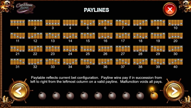 Caribbean Anne ใช้ระบบรีลแบบ 5×3 พร้อมการจ่ายรางวัลในรูปแบบ Ways to Win จำนวน 243 วิธี ไม่ต้องจำเส้นไลน์แบบตายตัว เพียงสัญลักษณ์เหมือนกันปรากฏจากซ้ายไปขวาอย่างน้อย 3 ตัวก็จะได้รับรางวัลทันที กลไกของเกมยังมีการหมุนแบบ Cascade เมื่อชนะ สัญลักษณ์ที่ถูกรางวัลจะหายไปและสัญลักษณ์ใหม่จะตกลงมาแทน ช่วยสร้างคอมโบต่อเนื่องได้หลายรอบในการหมุนครั้งเดียว เพิ่มจังหวะและความตื่นเต้นให้กับทุกการหมุนได้อย่างยอดเยี่ยม