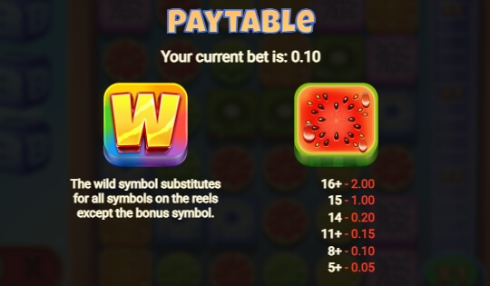 สัญลักษณ์ Wild ในเกมช่วยให้การเชื่อมต่อคลัสเตอร์ง่ายขึ้น โดยแทนสัญลักษณ์ผลไม้ได้ทุกชนิด นอกจากนี้ยังมีตัวคูณชนะที่เพิ่มขึ้นทุกครั้งที่เกิดการคอมโบ จึงทำให้การหมุนรอบเดียวมีโอกาสสร้างมูลค่ารางวัลสูง ตัวคูณลักษณะนี้เหมาะกับผู้เล่นที่ชอบการชนะต่อเนื่องและชอบความลุ้นแบบก้าวกระโดดในแต่ละรอบ