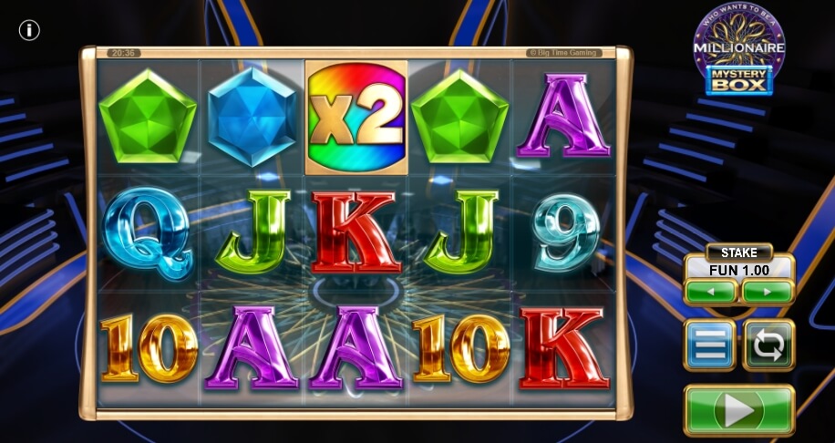 Millionaire Mystery Box จากค่าย Relax Gaming กราฟิกใช้แรงบันดาลใจจากรายการเกมโชว์ พร้อมฉากเวทีไฟนีออนและองค์ประกอบแบบสตูดิโอจริง ทำให้ภาพดูคมชัดและมีเอกลักษณ์ อัญมณีแต่ละสีถูกออกแบบให้เด่นชัด ช่วยให้การหมุนแต่ละรอบมีความรู้สึกหรูและทันสมัย