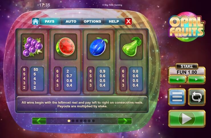 ภาพตัวอย่างเกม Opal Fruits จาก Relax Gaming