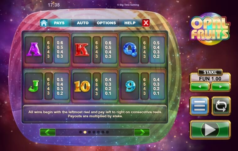 Opal Fruits เป็นเกมสล็อตที่ผสานความคลาสสิกของผลไม้เข้ากับความทันสมัยของธีมอวกาศได้อย่างลงตัว จุดเด่นคือฟีเจอร์ Triple Reaction และตัวคูณไม่จำกัดที่ทำให้เกมมีศักยภาพในการจ่ายรางวัลสูงมาก RTP 96.75% ความผันผวนจัดว่าพอดีสำหรับผู้เล่นทั้งหน้าใหม่และระดับโปร
